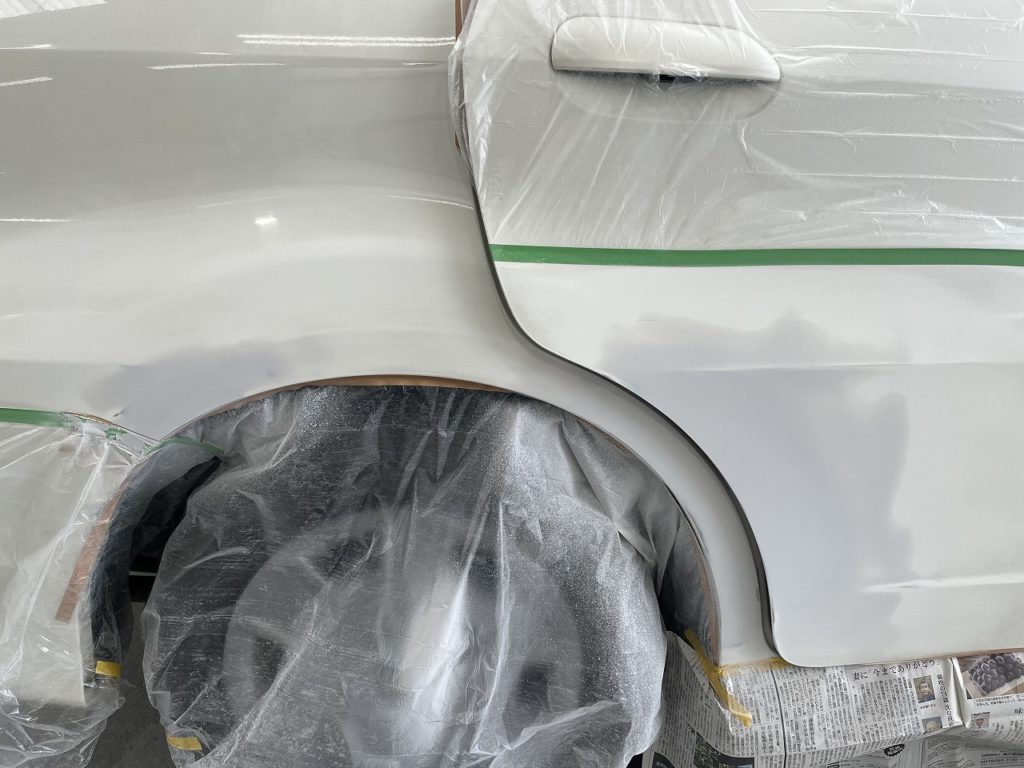 色が出来ましたら、サフェーサーを研磨して、塗装パネルの脱脂、足付けをしてマスキングします。