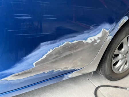 板金が出来ましたら、パテで表面の細かな凹凸を均して研磨します。