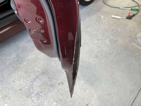 ドアはがっつり折れて曲がってへこんでいます。