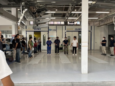 今回、茨城県の車体協から講師に来ていただいた方、この方は偶然にも板金塗装研究室のメンバーでした。