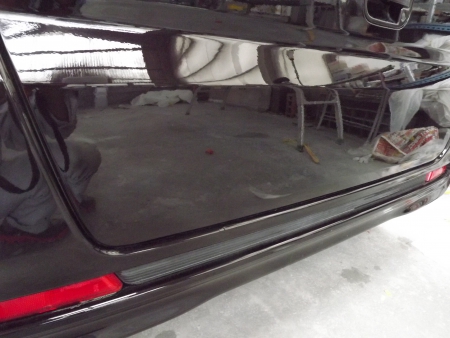 バックしていて後ろの障害物に気がつかず、バックドアをへこませてしまったとのこと。